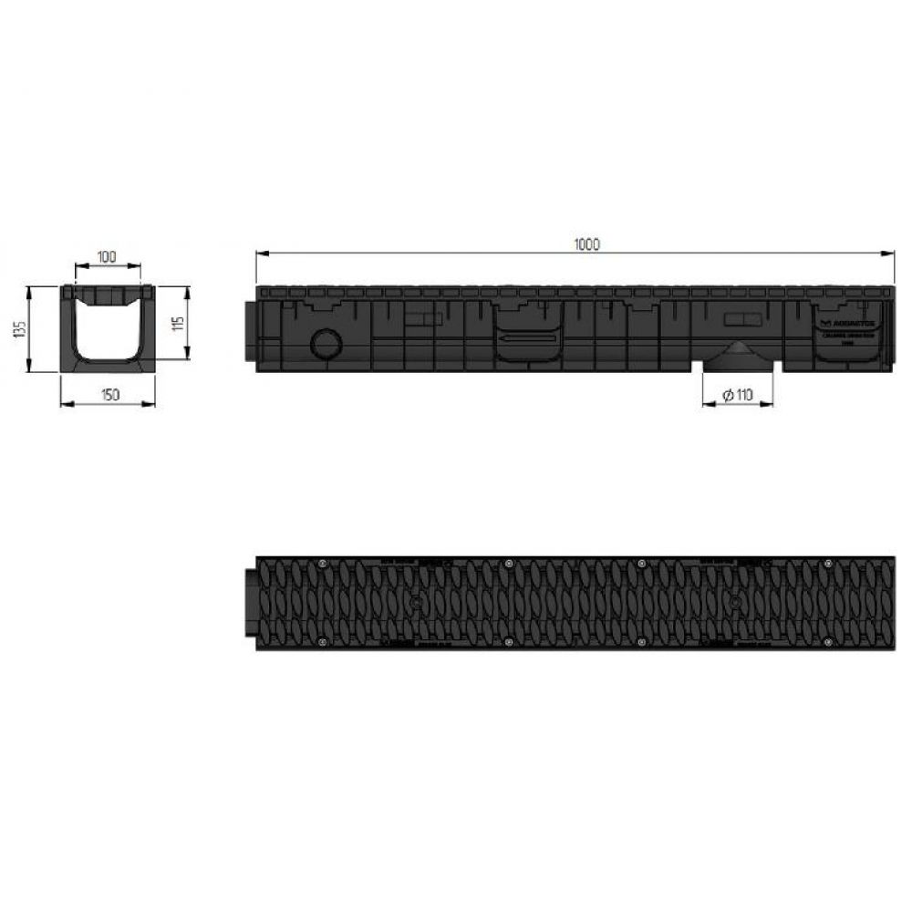 Лоток водоотводный пластиковый ЛВП Мастер 100 H135 B125 от производителя Аквасток по цене 2 390 р